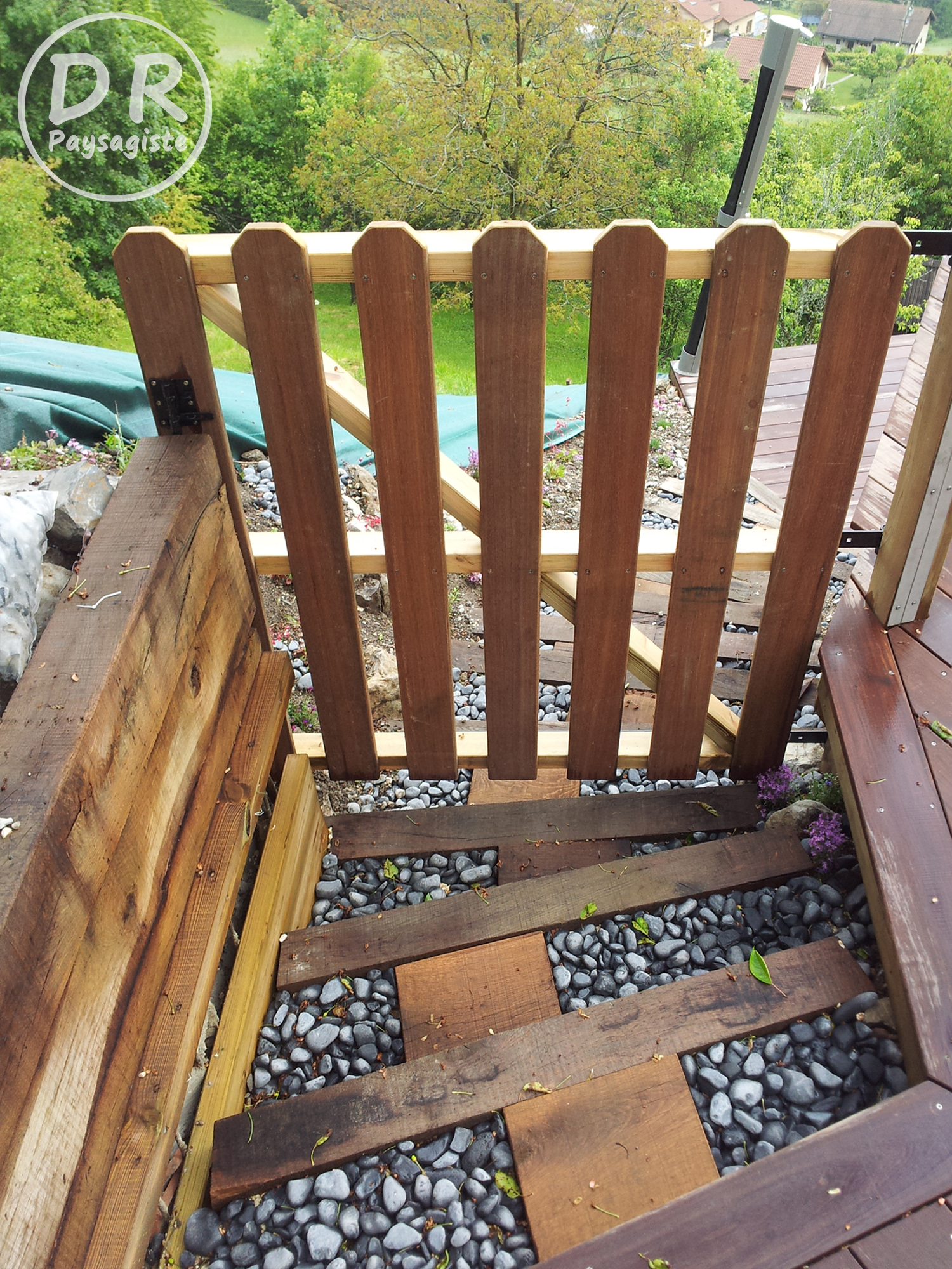 aménagement extérieur portillon bois escalier