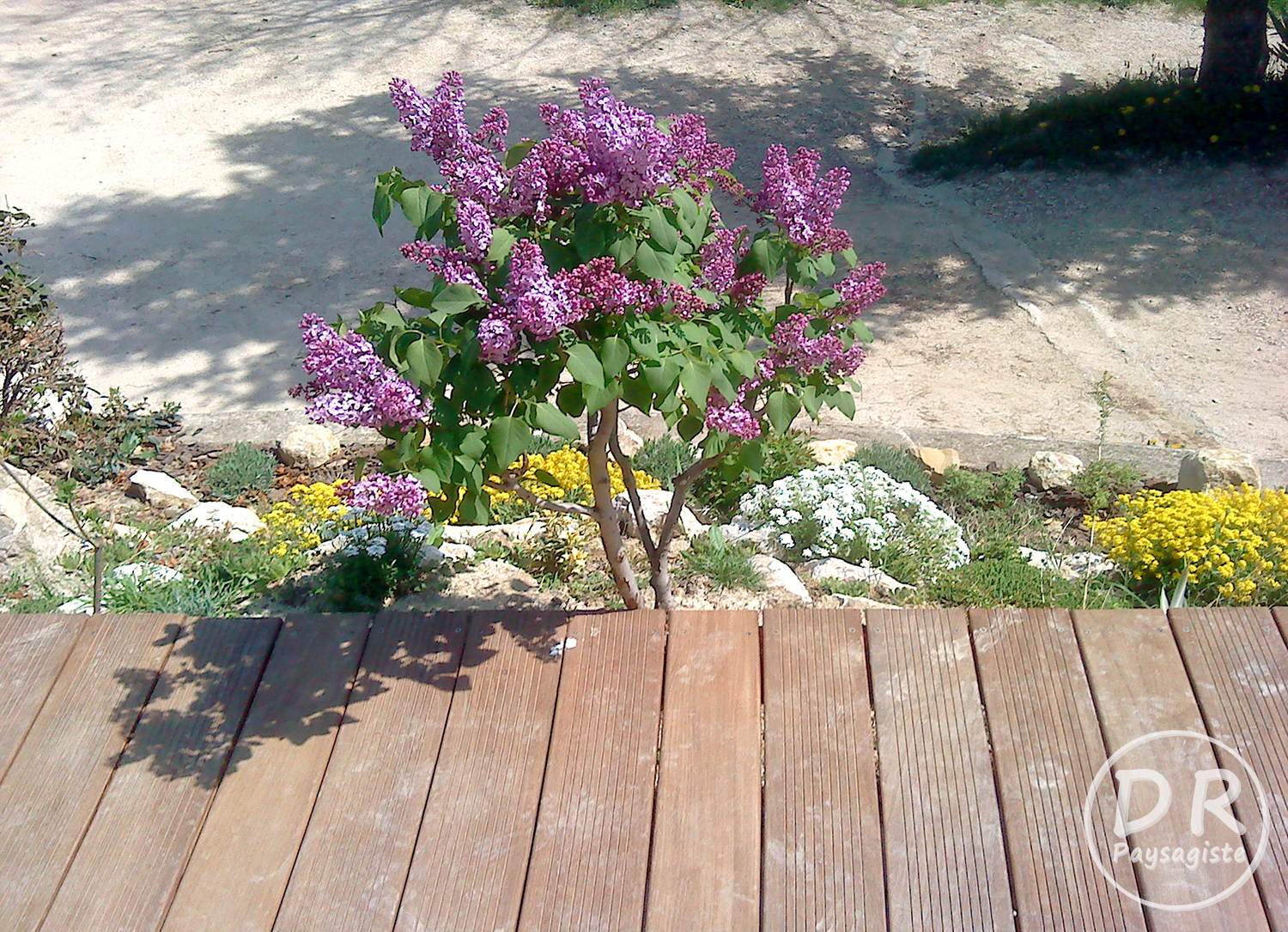 Aménagement extérieur Végétalisation bute roches terrasse bois
