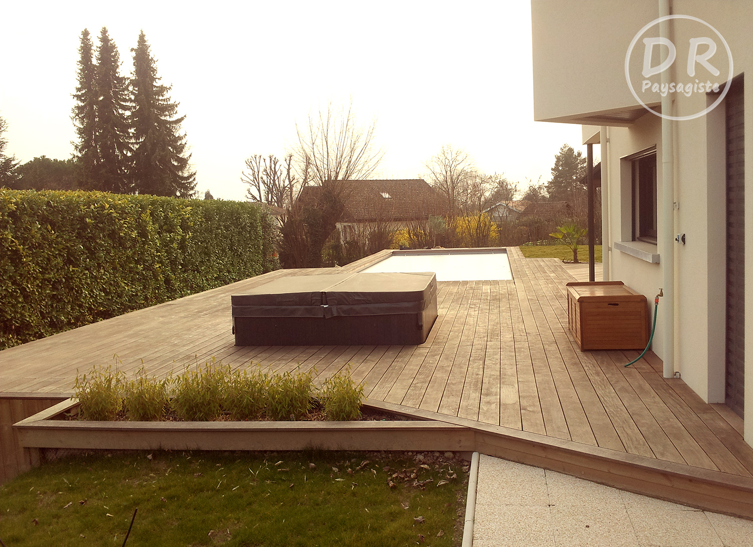 Jaccuzzi fermé + piscine + terrasse en bois