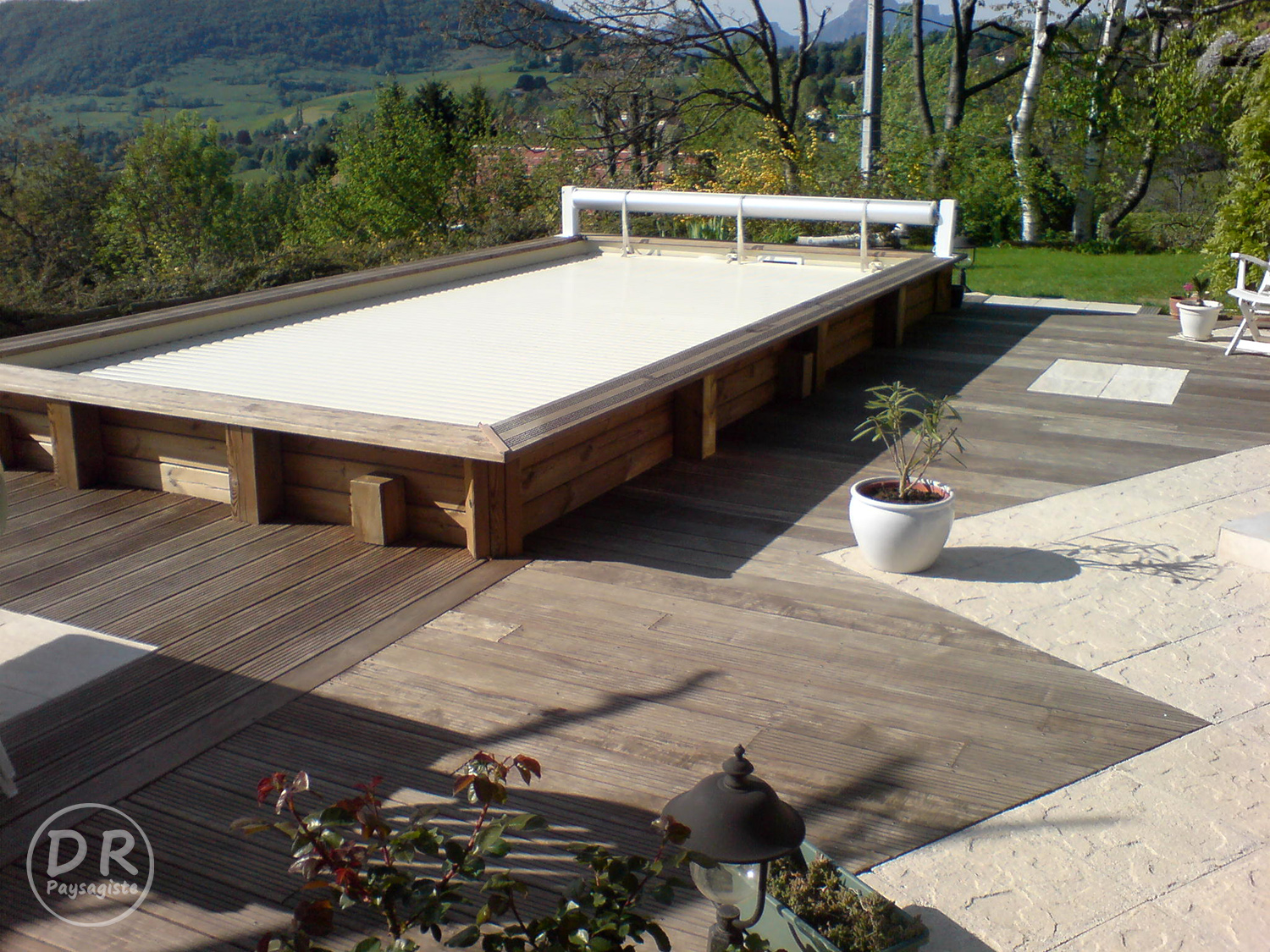 Terasse bois carrelage + piscine