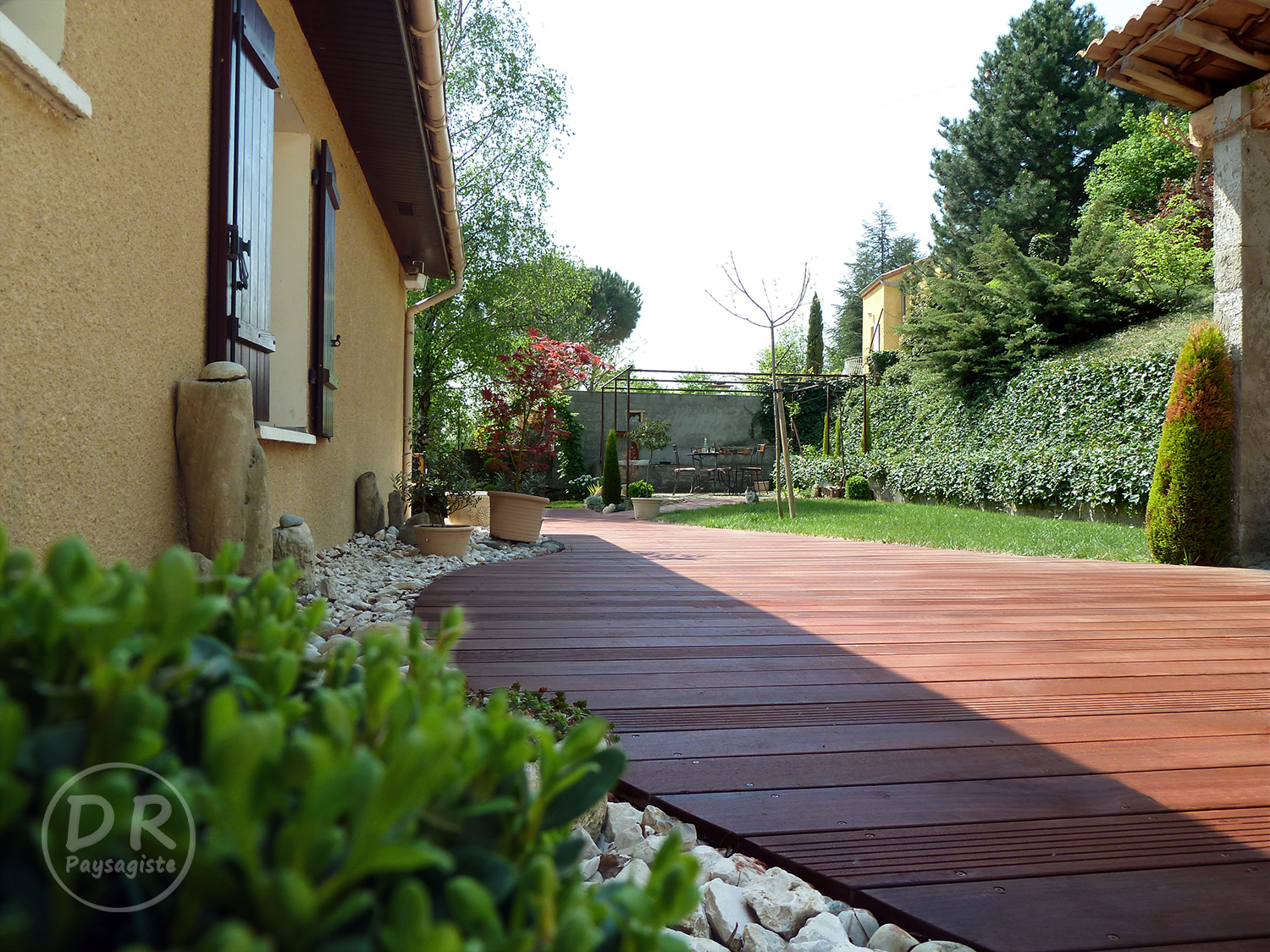 Terrasse bois ipé gravier végétation