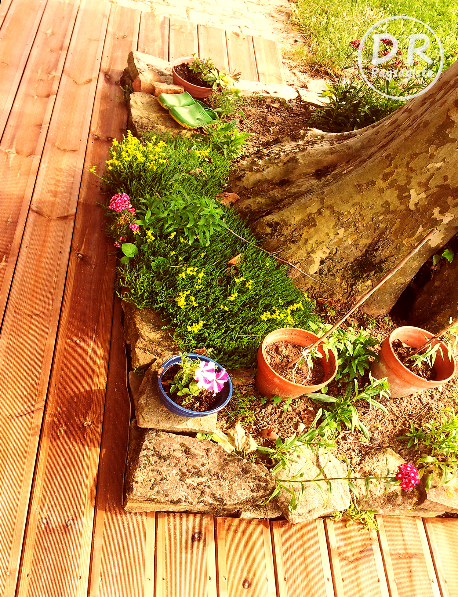 Terrasse bois résineux pin fleurs